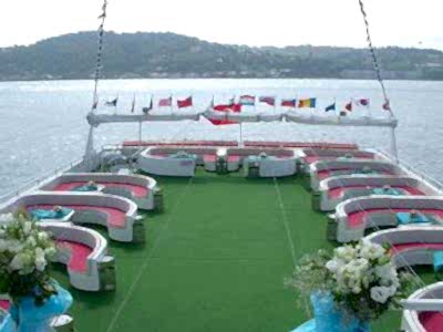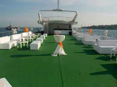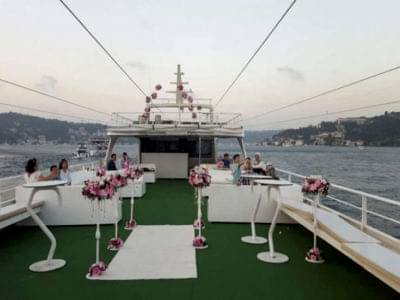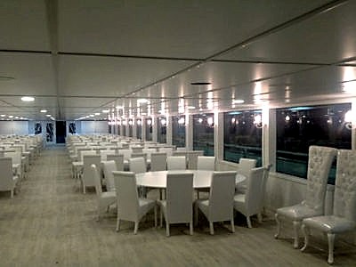 Yüksek yolcu kapasiteli ve lüks Tekne İNC ile sizlerde özel organizasyonlar tertip edebilirsiniz. 42 metre uzunluğa ve 9 metre genişliğe sahip bu lüks teknemizde, kına, nişan, düğün, gezi ve parti gibi kalabalık organizasyonlarını gerçekleştirebilir, farklı konsept imkânına erişebilirsiniz. Denizin mavi sularında daha prestijli bir sunum imkânına kavuşabileceğiniz bu organizasyonlarınız için yemek servisi de bulunan teknemizde, yuvarlak masalar için 204, dikdörtgen masalar için 300 kişilik kapasite bulunmaktadır. Sizde bu tekne hakkında bizleri arayarak bilgi sahibi olabilirsiniz.